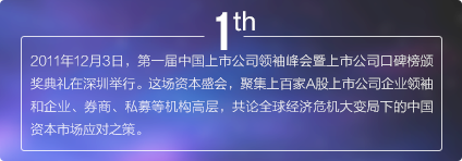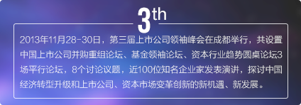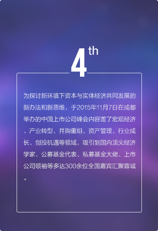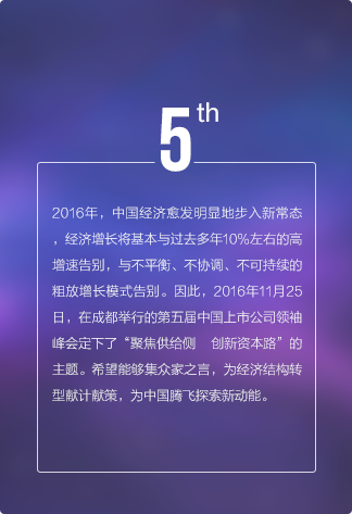 上市公司領(lǐng)袖峰會是由每日經(jīng)濟(jì)新聞主辦的中國資本市場最具影響力的大型交流平臺,最重要的年度盛會之一,峰會自2011年發(fā)起,迄今已經(jīng)連續(xù)舉辦五屆。2017年第六屆中國上市公司領(lǐng)袖峰會將以“新時代 新機(jī)遇 新?lián)?dāng)”為主題,匯聚中國數(shù)百家優(yōu)秀上市公司、上百家券商基金機(jī)構(gòu),邀請政府官員、商界領(lǐng)袖、學(xué)界專家齊聚成都,共話財經(jīng)宏圖與資本愿景。